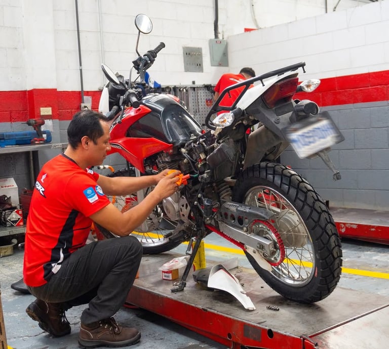 Confía en nosotros porque nuestros técnicos no solo reparan motos, ¡viven y respiran Honda! Se capacitan constantemente para ofrecerte el mejor servicio con la tecnología más avanzada.